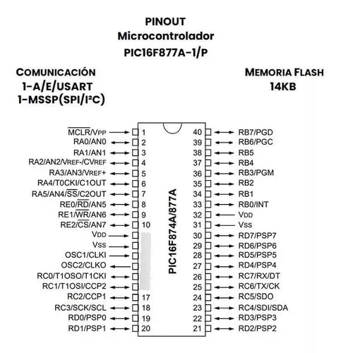 PIC16F877A Microcontrolador PIC 8 Bits DIP-40