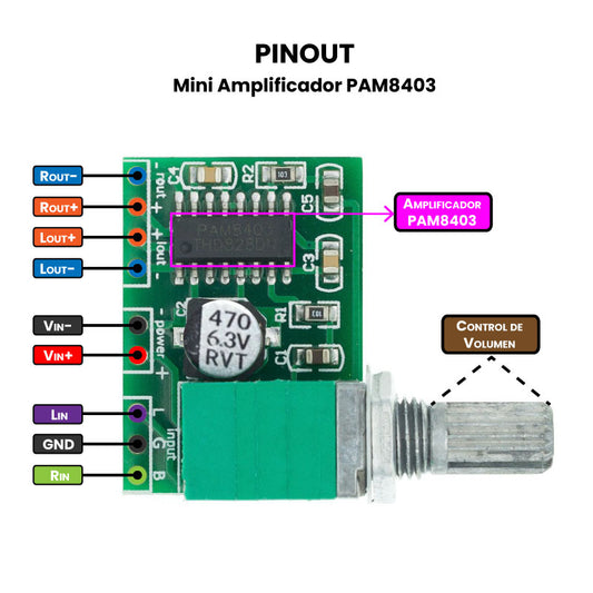 Módulo PAM8403 Mini Amplificador 5V con Control de Volumen